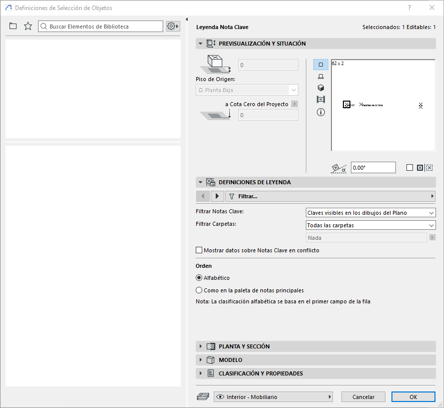 Ajusta la visibilidad de las Notas Clave en la leyenda a través de varias configuraciones disponibles en el diálogo de configuración de objetos.
