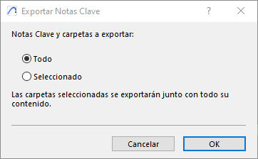 Exporta tus Notas Clave desde Archicad a un archivo de Excel utilizando el botón "Exportar Notas Clave" en la paleta de Notas Clave. Puedes elegir exportar todas las Notas Clave o solo los seleccionados.