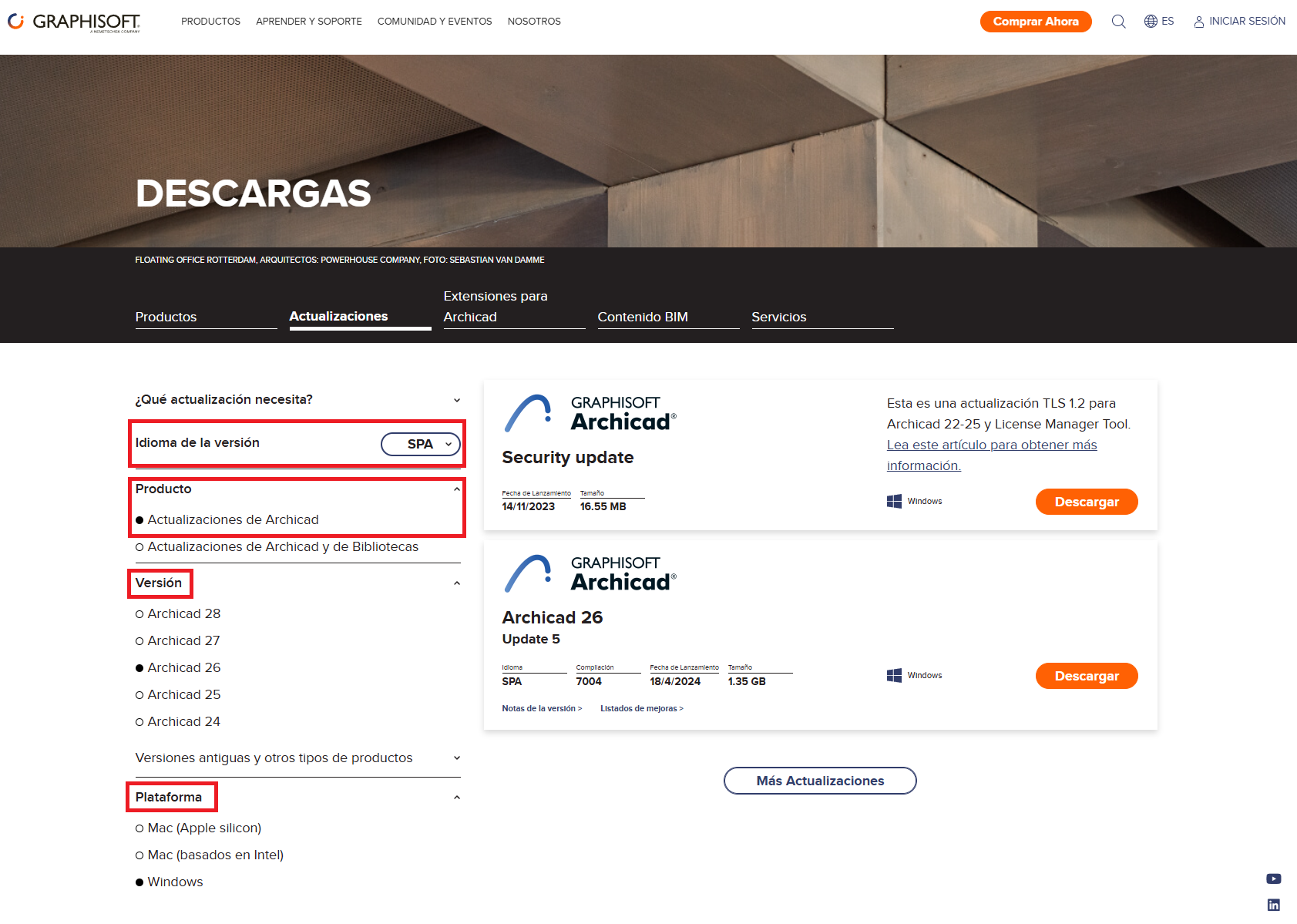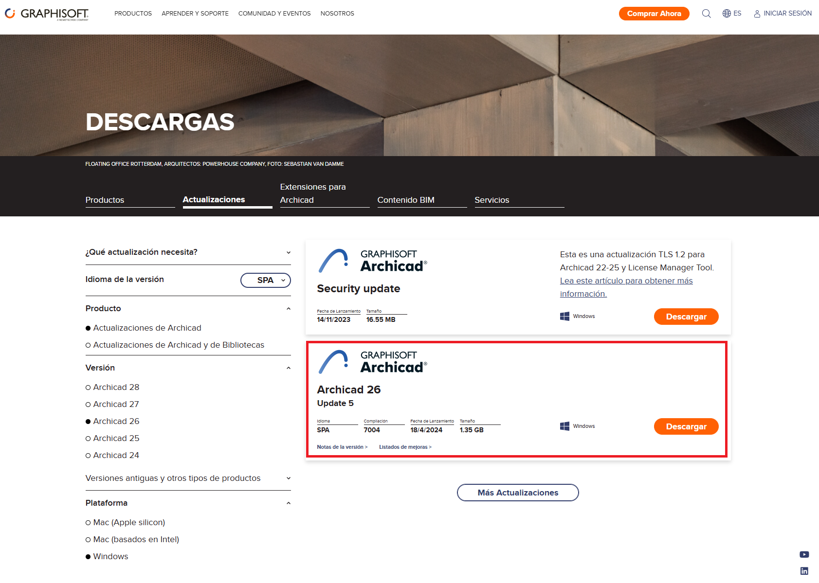 - Entra en la página de Descargas de Graphisoft (Descargas – Graphisoft España).