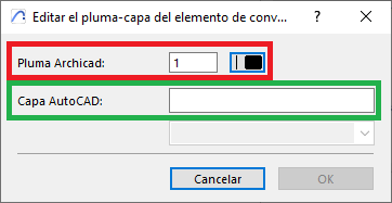 Capa Autocad (verde): para asignar la Pluma (índice) de Archicad a una capa DXF-DWG especifica.