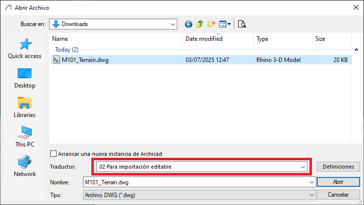 Pasos para abrir un archivo DWG/DXF en Archicad