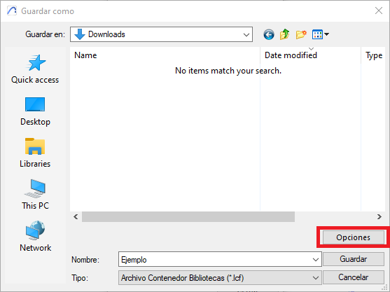 - Opcional: Haz clic sobre Opciones para comprimir el archivo .lcf.