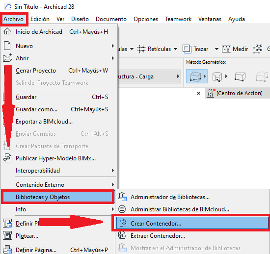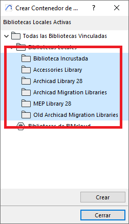 - Ve a: Archivo > Bibliotecas y Objetos > Crear Contenedor...