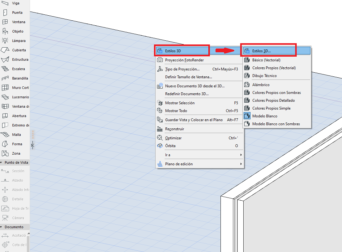 - Abrir la paleta de Estilos de Modelo 3D, haciendo click derecho sobre el ratón en una area libre de la vista 3D.
