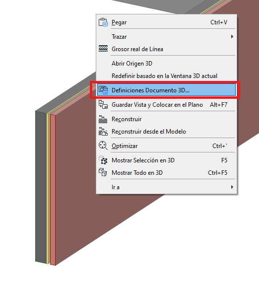 Seleccionar Definiciones del Documento 3D/Sección/Alzado.