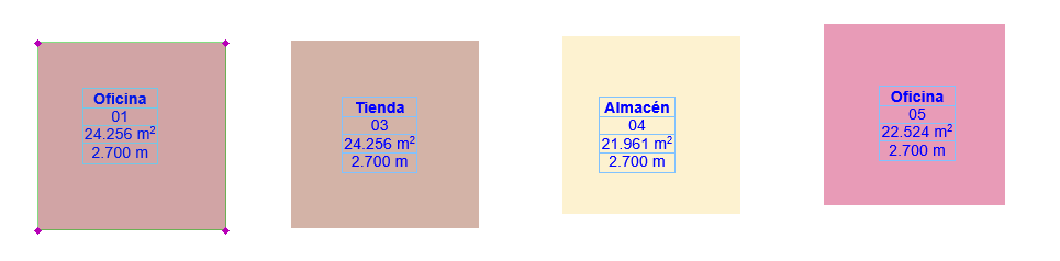- Abre el proyecto en Archicad (ver ejemplo, se defino 4 zonas diferentes, dos de ellas se les ha asignado la misma propiedad).