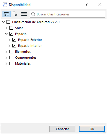 - En el cuadro de dialogo de Disponibilidad, seleccionamos Espacio (para hacer disponible la propiedad para todas las zonas).