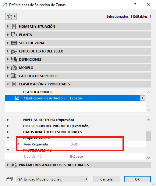 - Verificar la correcta clasificación como “Espacio” en los elementos Zona.