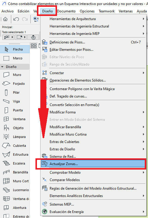 - Si los valores de superficie no se actualizan, usar Diseño > Actualizar Zonas.