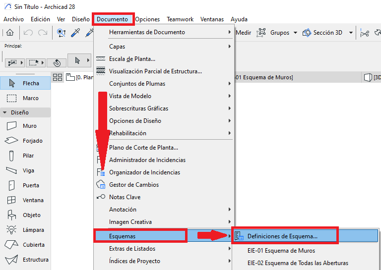 Ir al menú Documento > Esquemas > Definiciones de Esquema