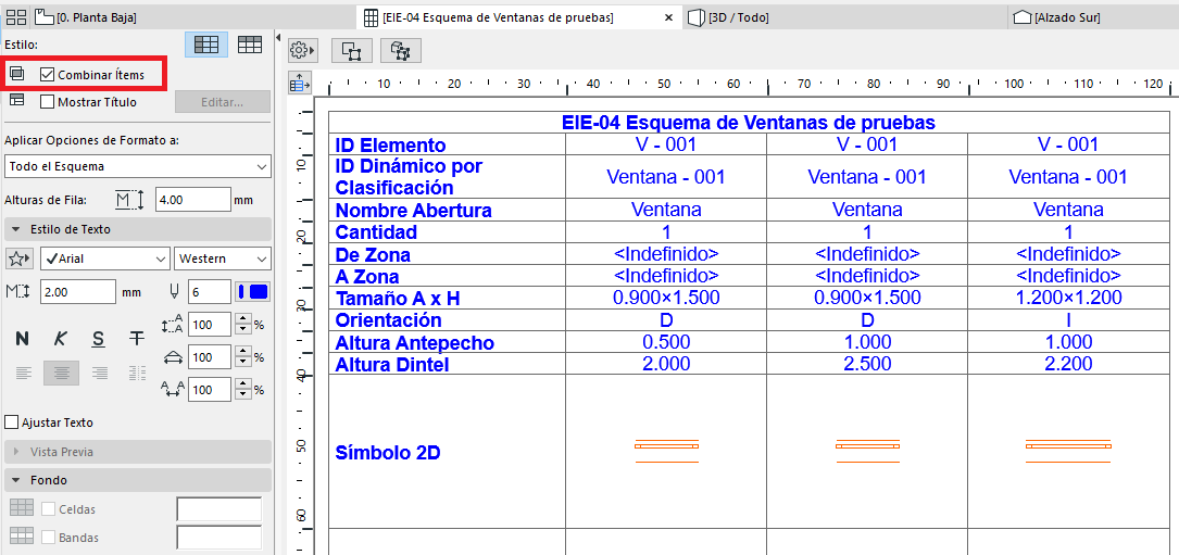 El objetivo es que Archicad combina todos los elementos similares bajo en la misma columna de forma automática.