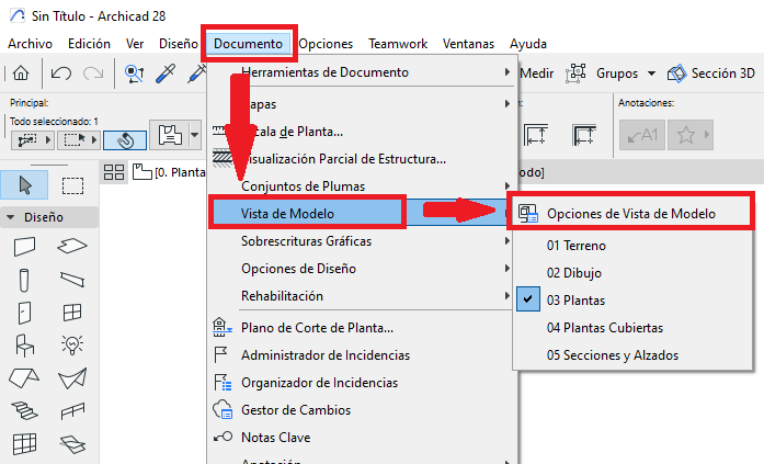 Ve a: Documento > Vista de Modelo > Opciones de Vista del Modelo.