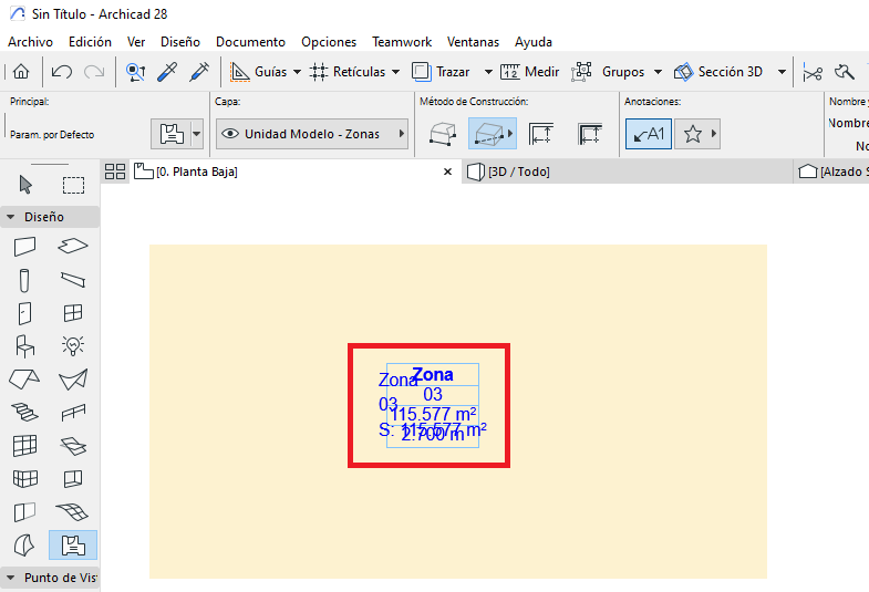 Al finalizar este articulo, el usuario será capaz de activar los Sellos de Zonas que se muestra en las Zonas creadas con la herramienta Zona de un proyecto en Archicad.
