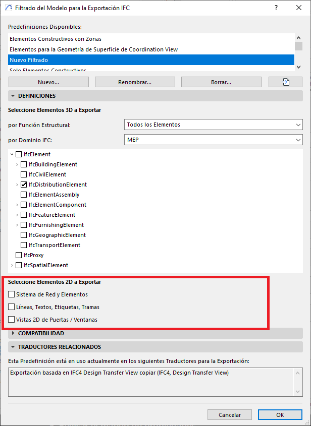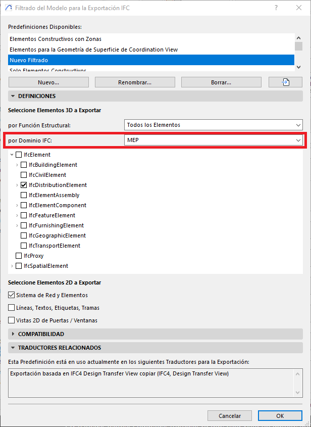 Paso 1: Configurar el filtrado MEP en un Traductor IFC