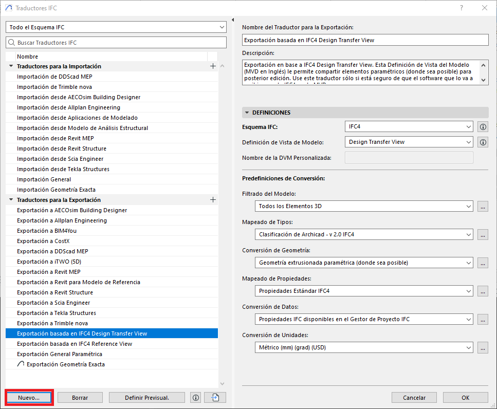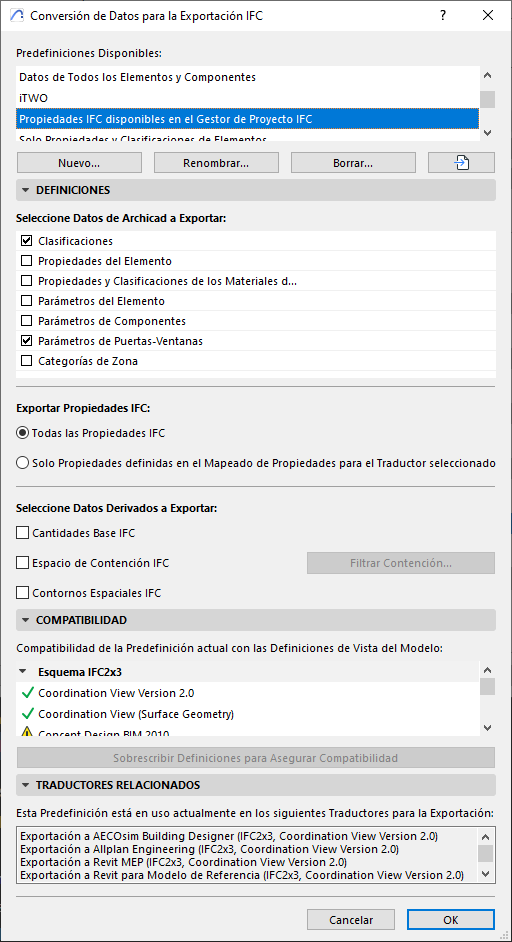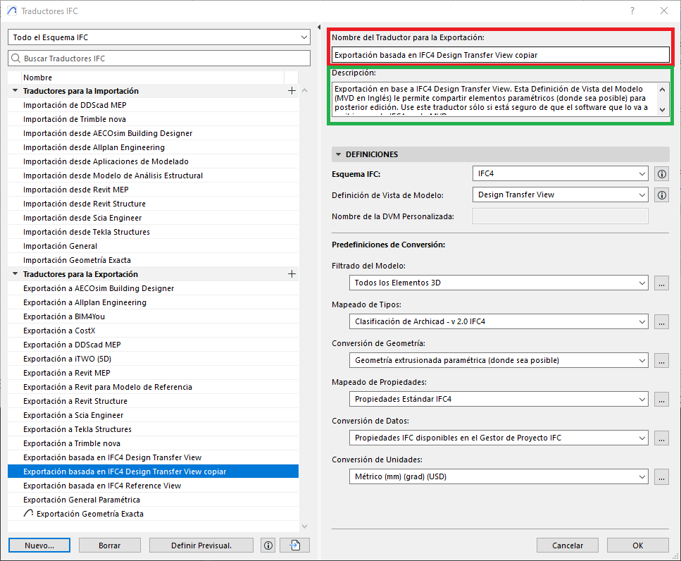 - Al terminar haz clic sobre Ok, y guarda el nuevo traductor IFC.