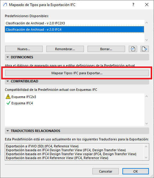 - Haz clic sobre Mapear Tipos IFC para Exportar...