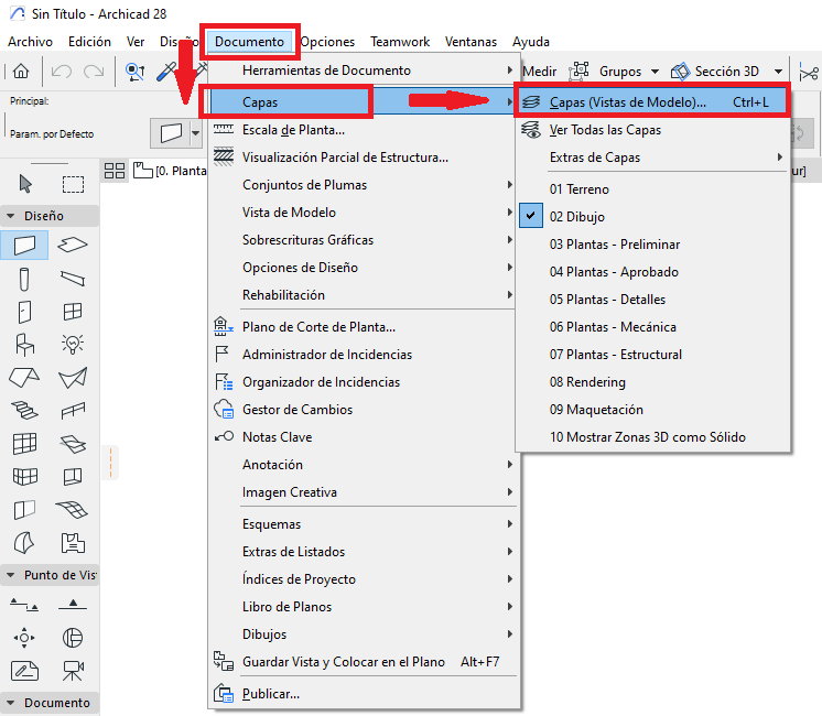 - Conocimiento básico de la ventana de diálogo de Capa en Archicad.
