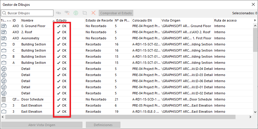 Todos los dibujos deben mostrar el estado “Ok”.