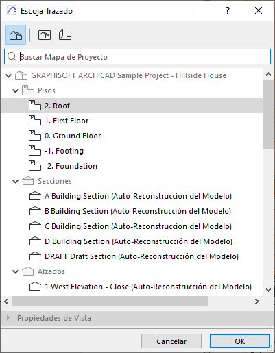 En el menú Escoja Trazado, haz doble clic sobre una Vista de Planta (por ejemplo, la planta baja).