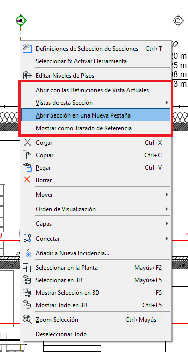 - Abrir un vista de Sección o de Alzado en una nueva pestaña.