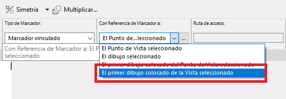 En la opción Con referencia de Marcador a, selecciona El primer dibujo de la Vista seleccionada.