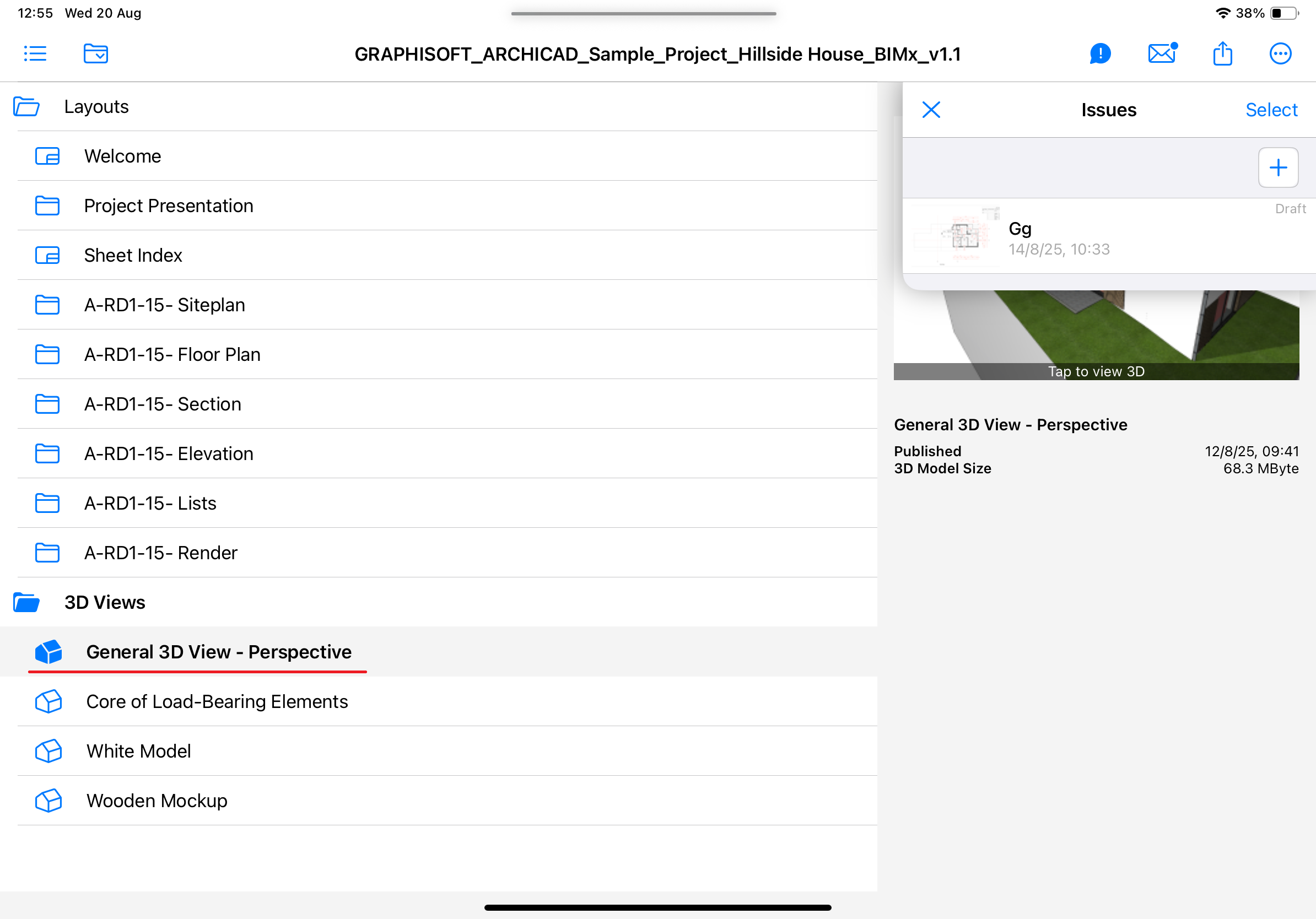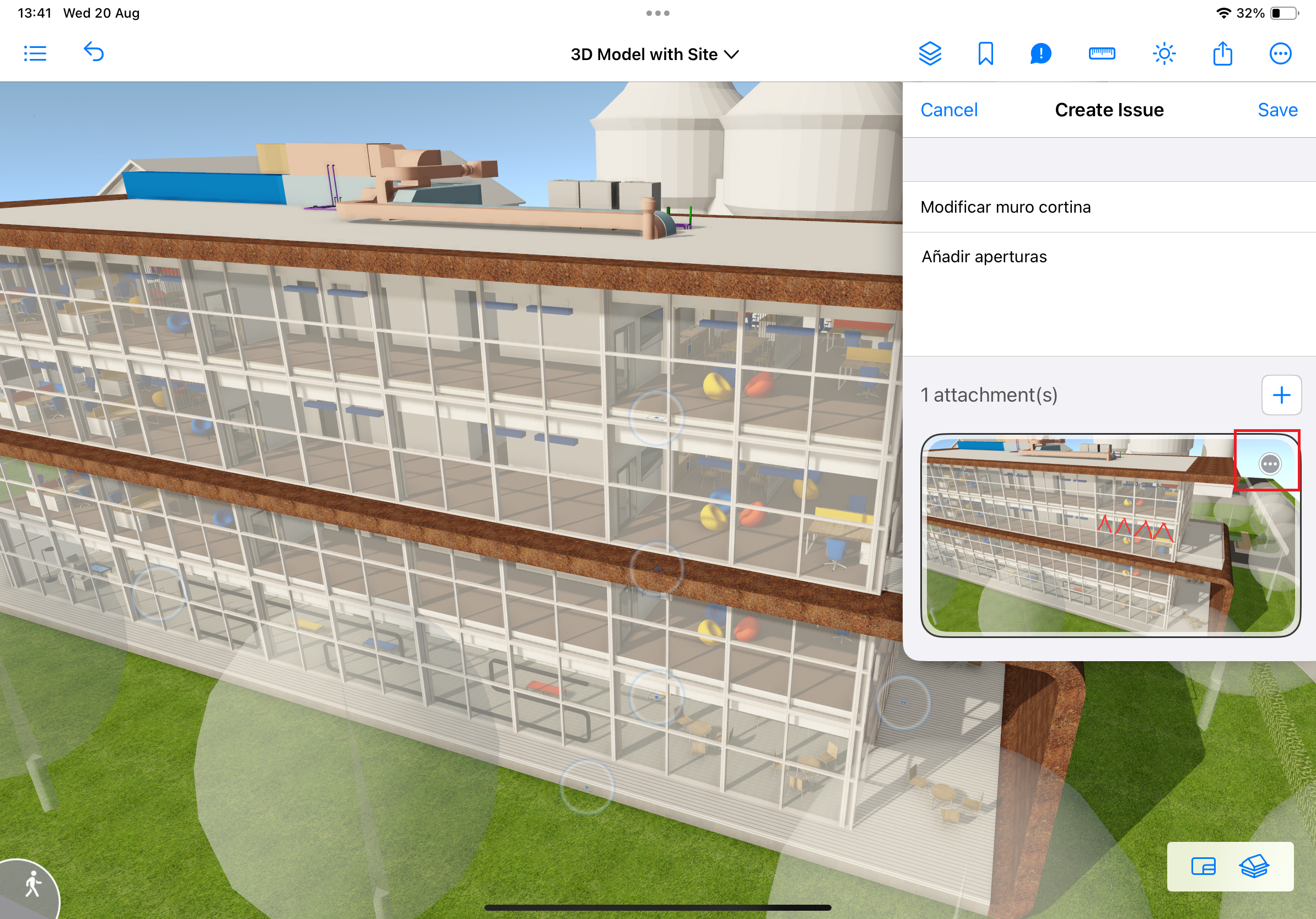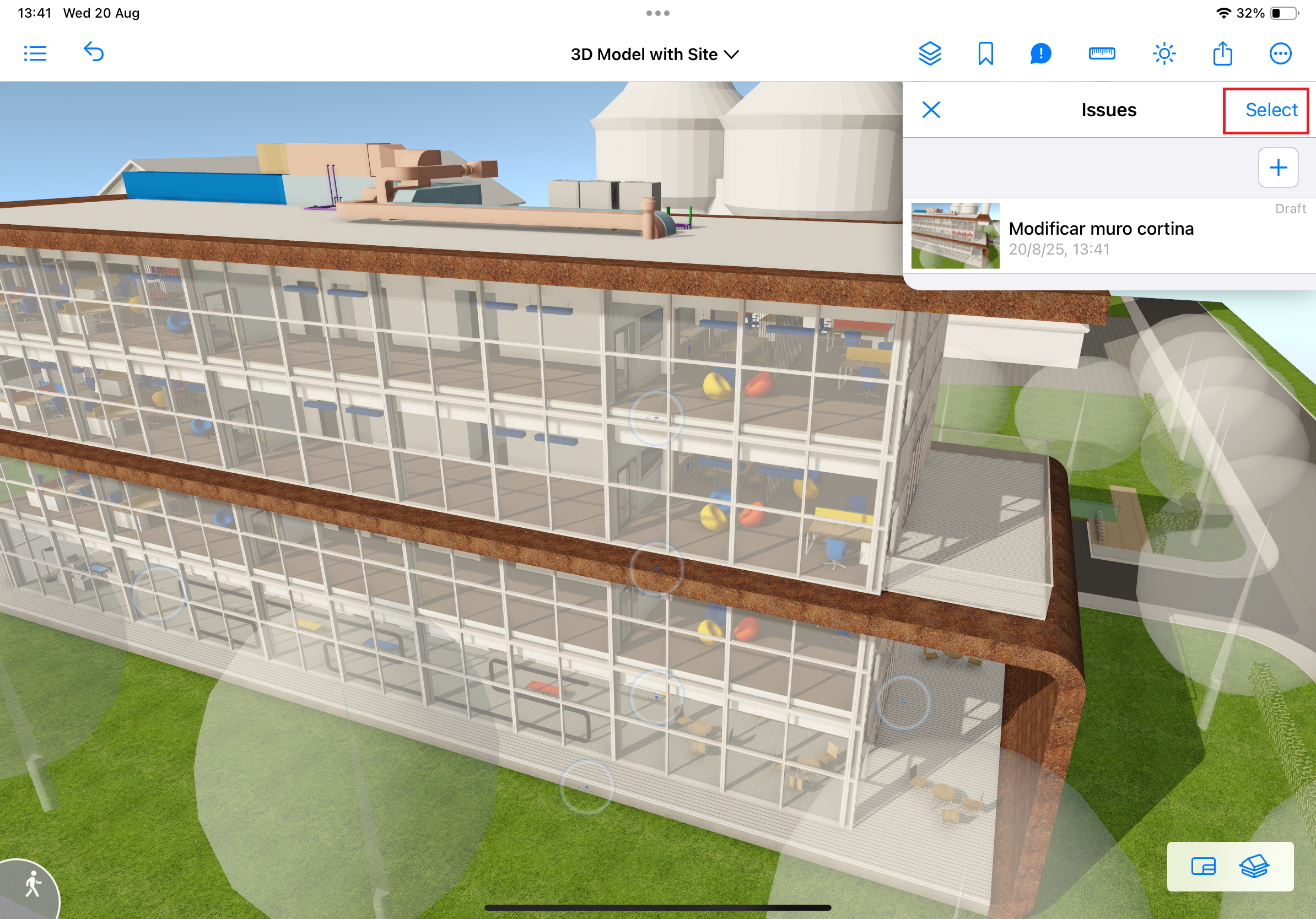 Desde el modelo 3D:- Acceder al modelo desde BIMx Pro, y seleccionar una vista del modelo