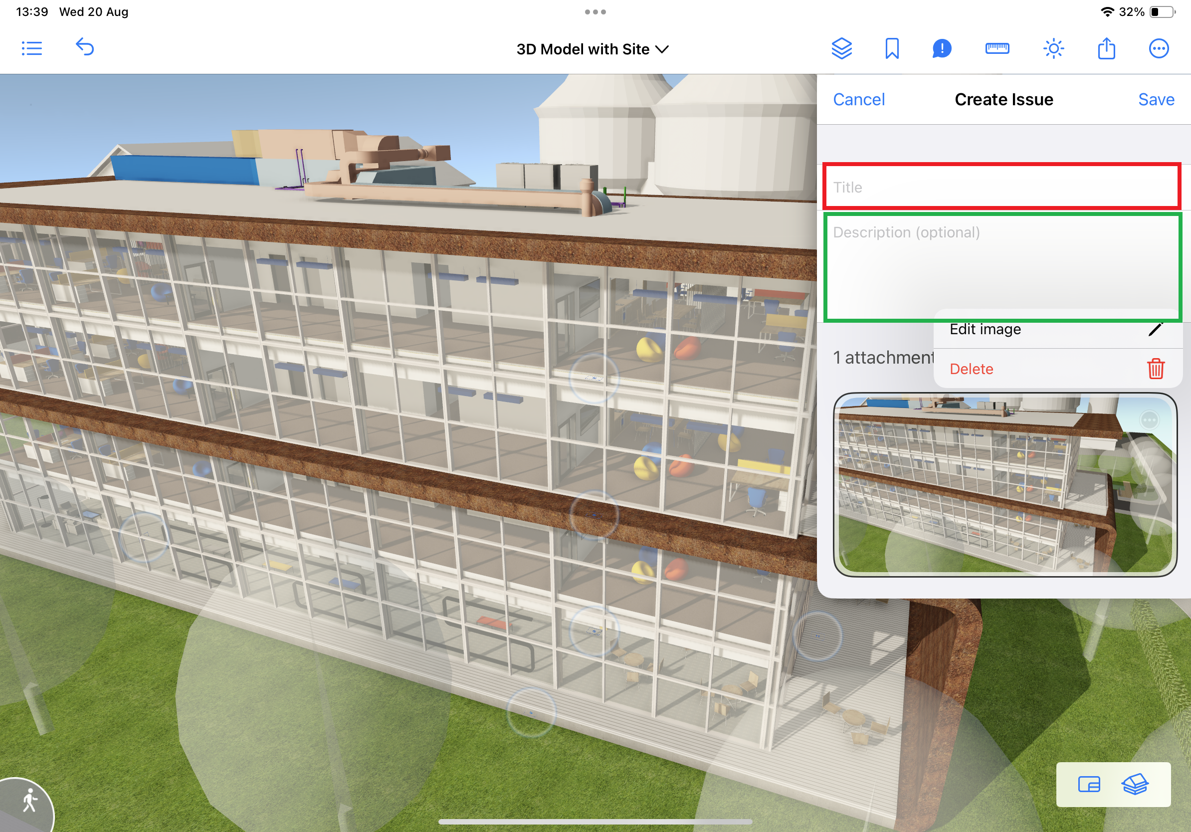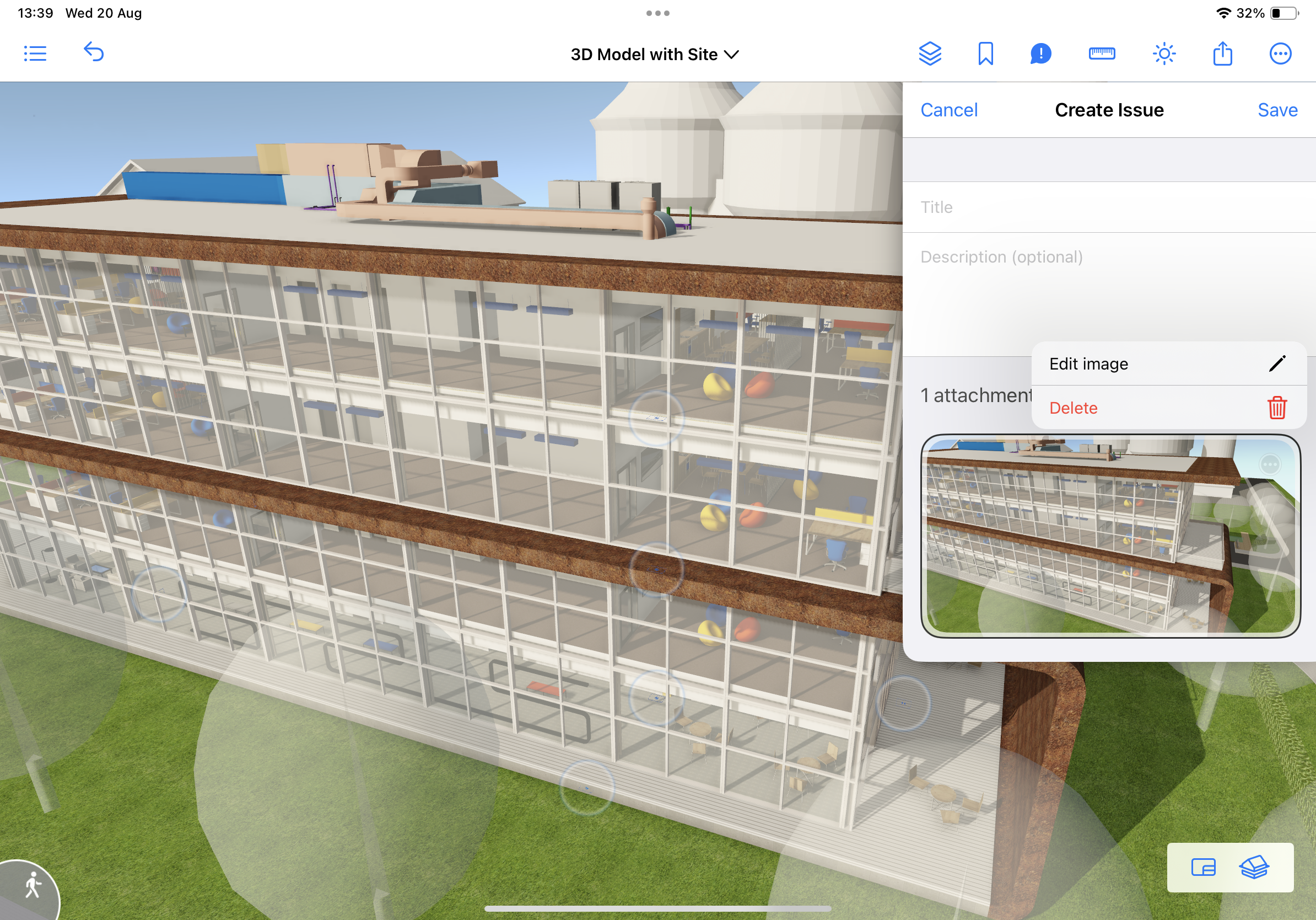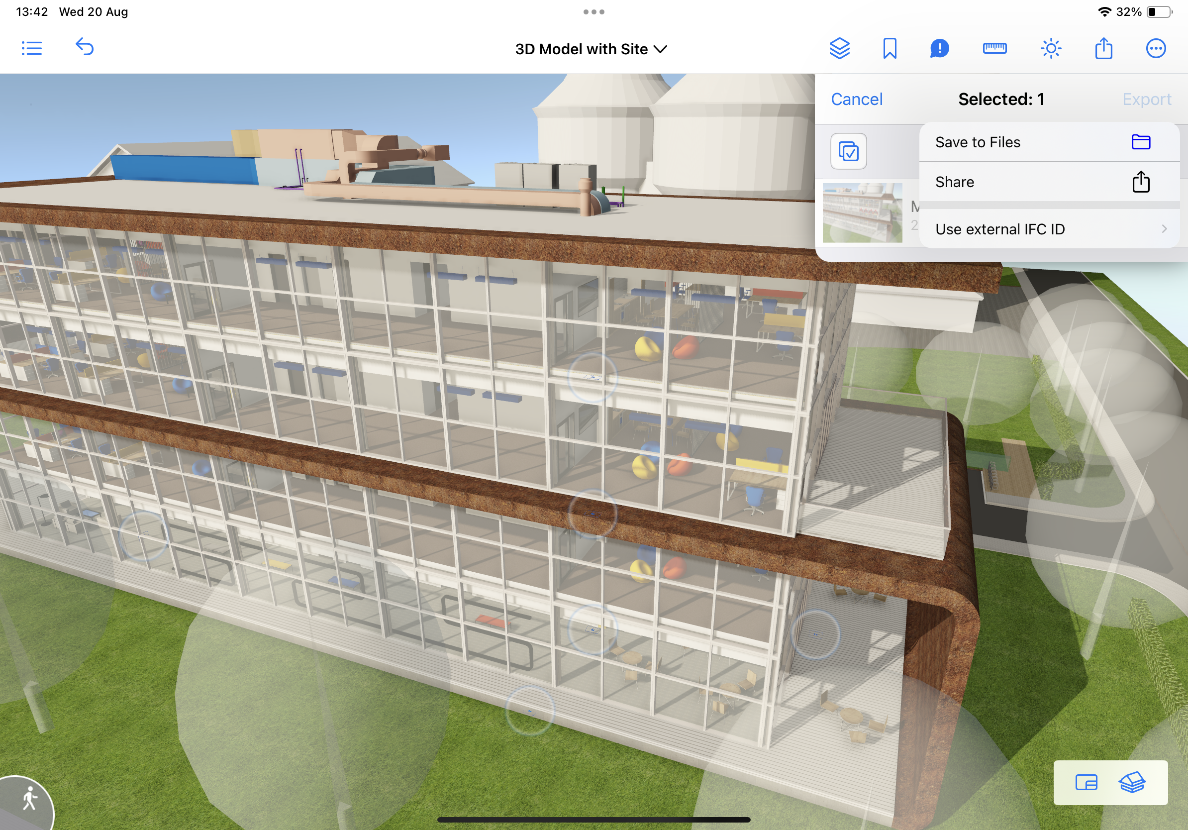 Desde el modelo 3D:- Acceder al modelo desde BIMx Pro, y seleccionar una vista del modelo