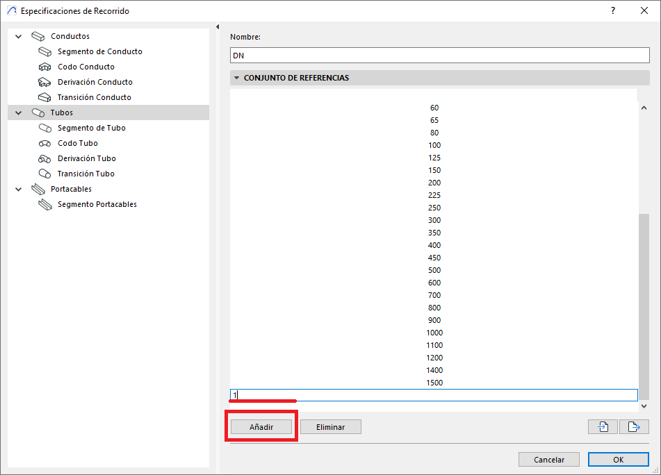 - Para añadir una nueva dimension al Conjunto de Referencia pulsa Añadir, y rellena la nueva casilla con la nueva dimension.