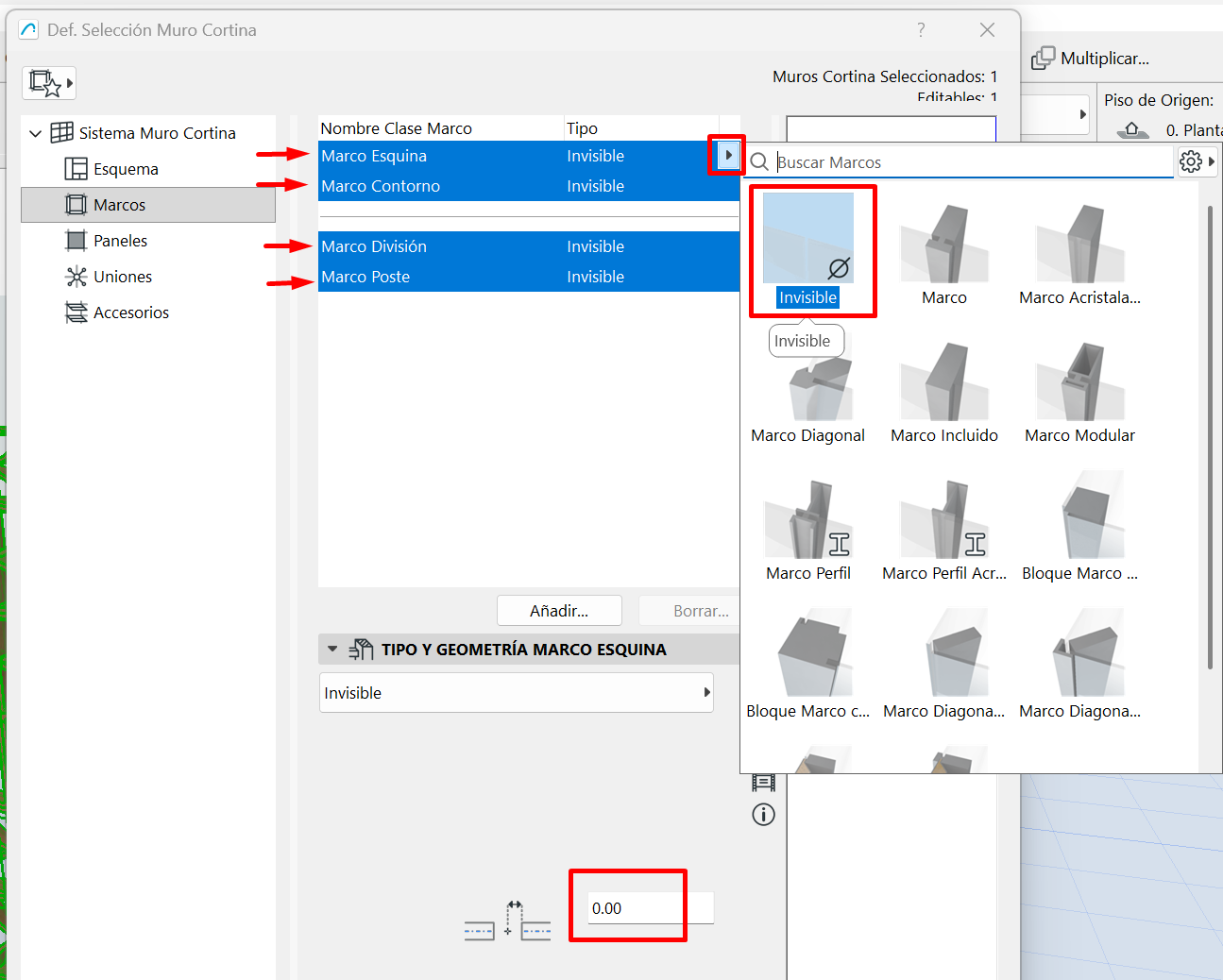 - Crea un Muro Cortina y entra a sus definiciones.
