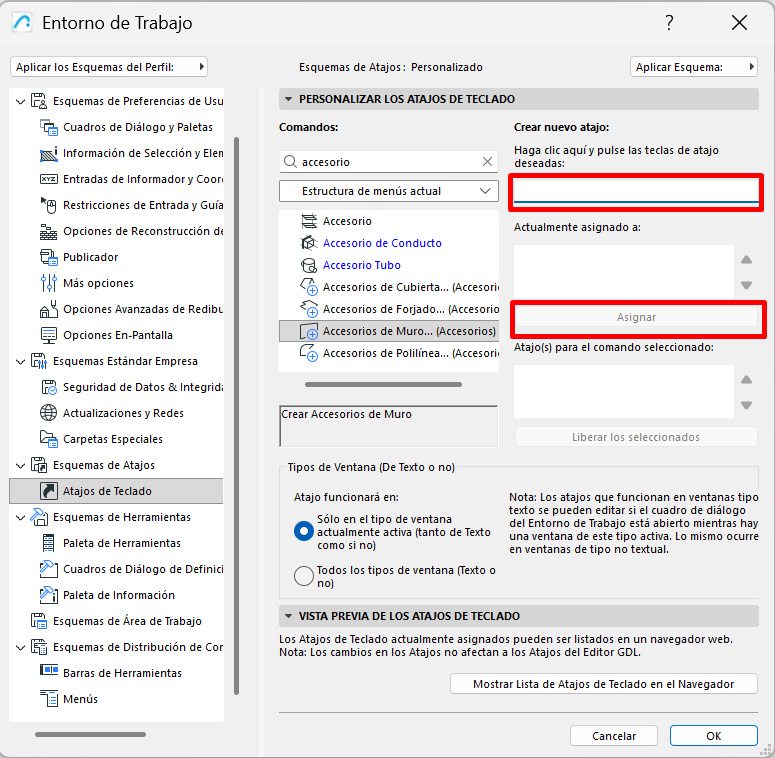 - Ve a Opciones → Entorno de trabajo → Atajos de teclado.