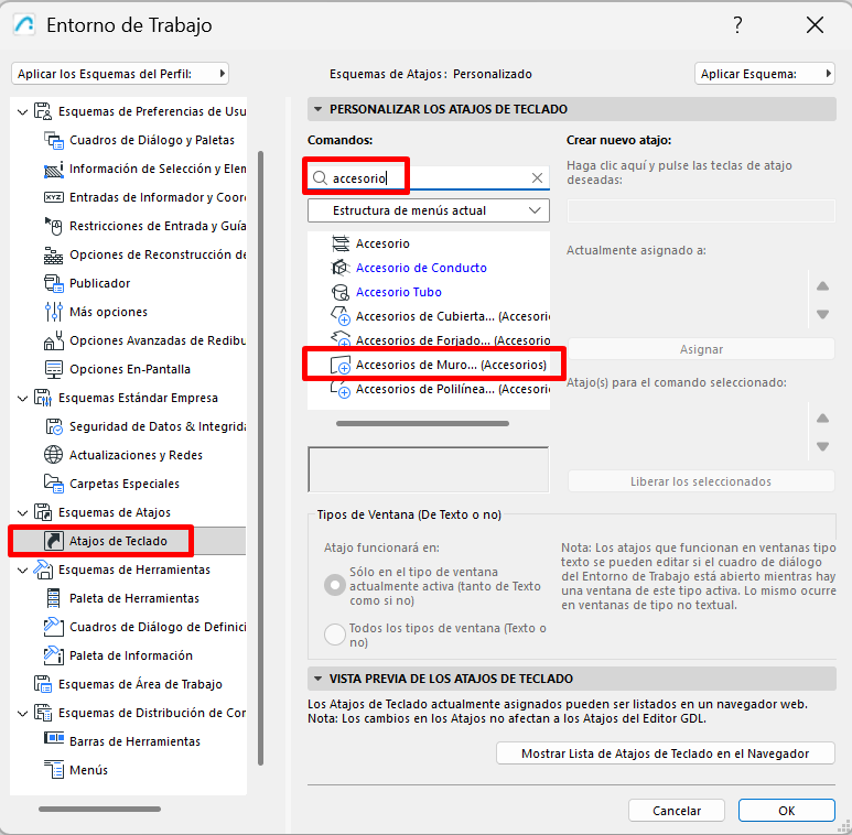 - Accede al comando Accesorios sin seleccionar previamente un muro.