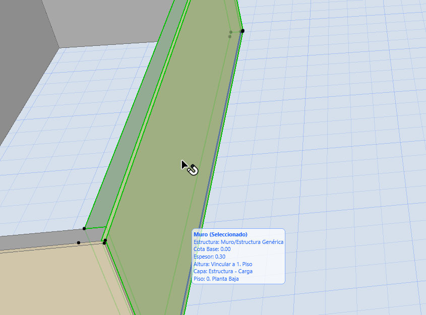 - En planta, selecciona el muro sobre el que deseas trabajar.