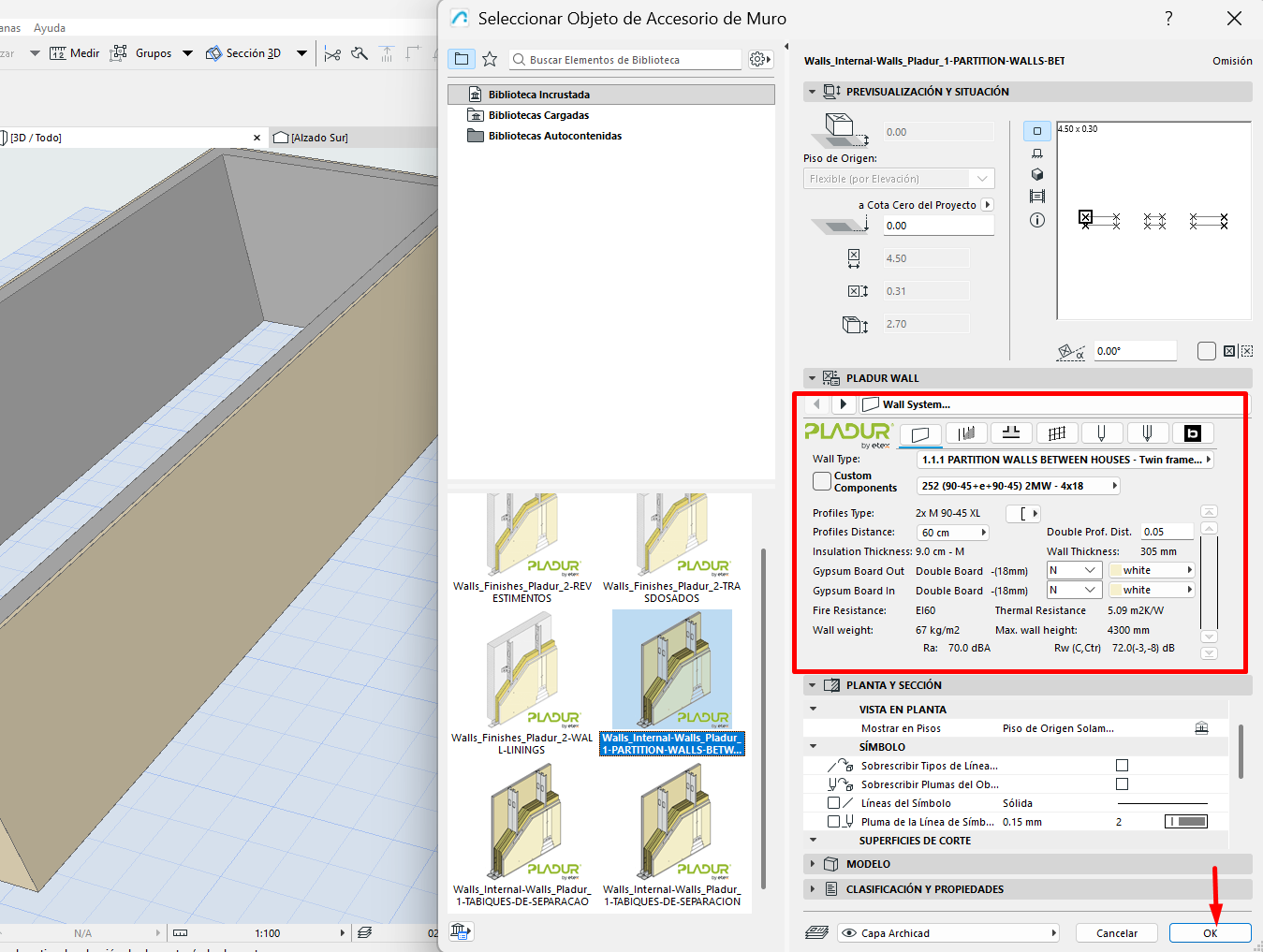 En el cuadro de diálogo, elige el objeto especial y ajusta sus parámetros (dimensiones, superficies, representación 2D/3D, orientación, etc.).
