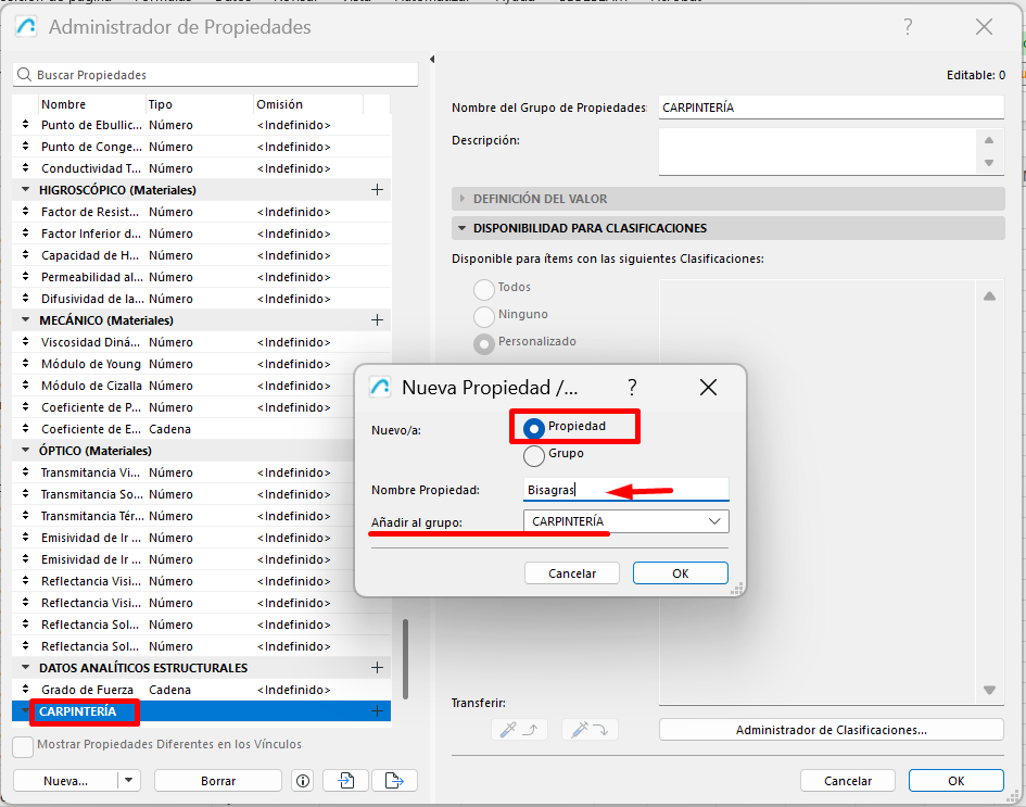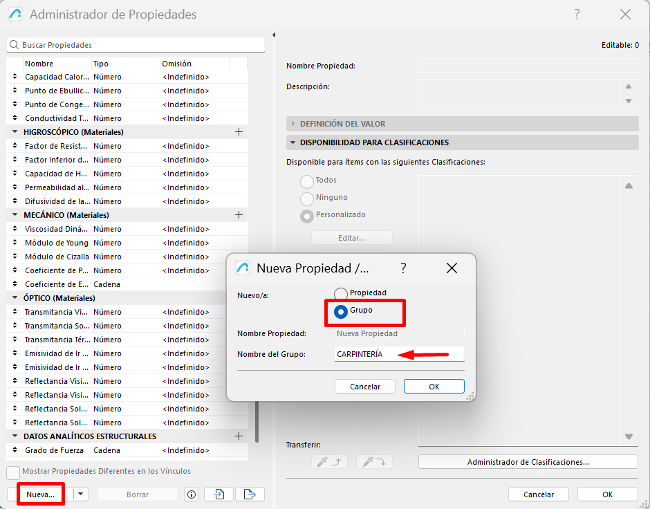 Para crear una propiedad nueva en Archicad, ve a: